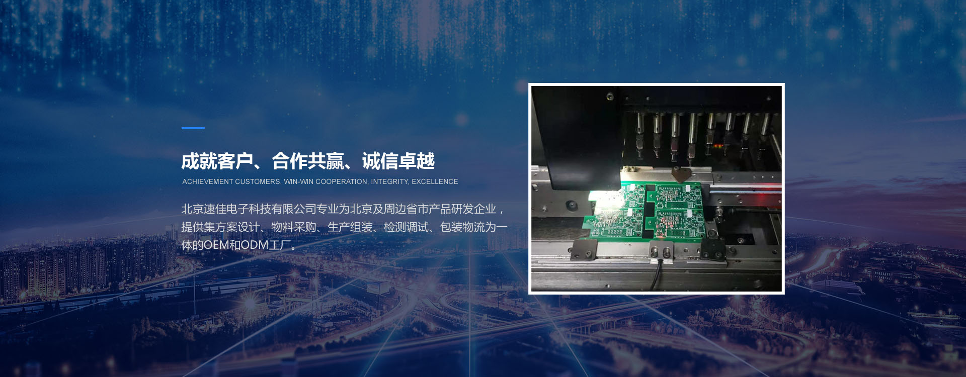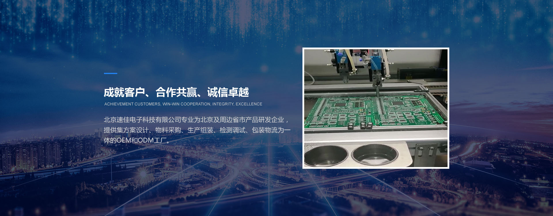 北京速佳電子科技有限公司專業為北京及周邊省市產品研發企業,提供集方案設計、物料采購、生產組裝、檢測調試、包裝物流為一體的OEM和ODM工廠。